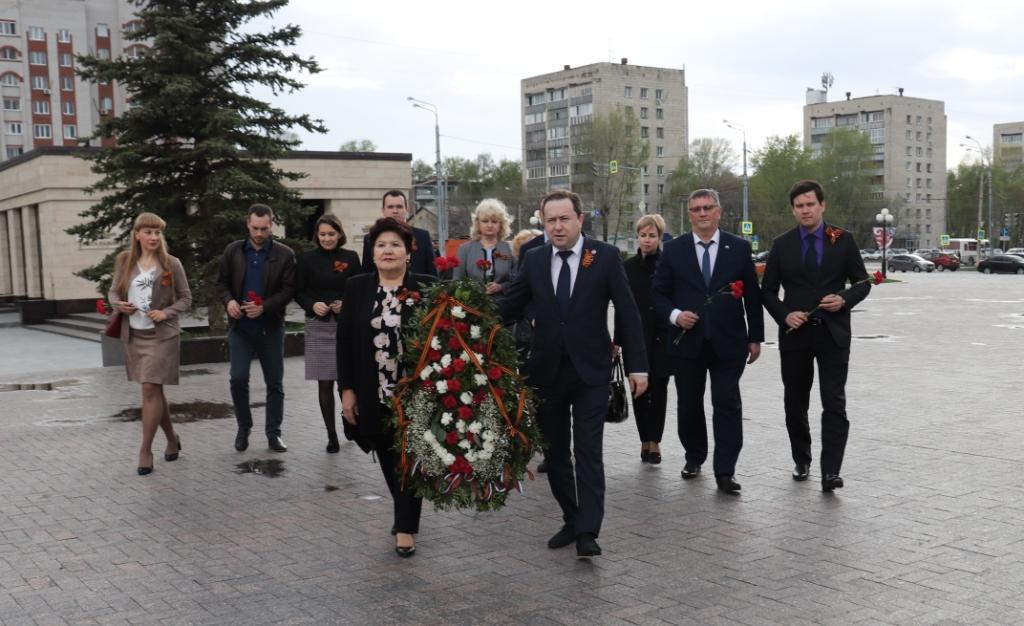 В честь 74 годовщины Победы в Великой Отечественной Войне1941-1945 гг. управляющий региональным Пенсионным фондом Эдуард Вафин совместно с Председателем РООО «Союз пенсионеров России» по Республике Татарстан Любовью Мишиной возложили венок к мемориалу памяти Героям Великой Отечественной Войны.