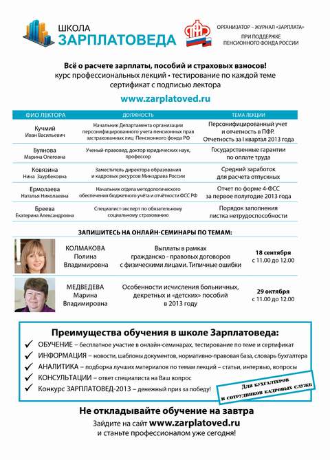 Журнал «ЗАРПЛАТА» при поддержке Пенсионного фонда России объявляет об открытии нового проекта - «Школа Зарплатоведа».