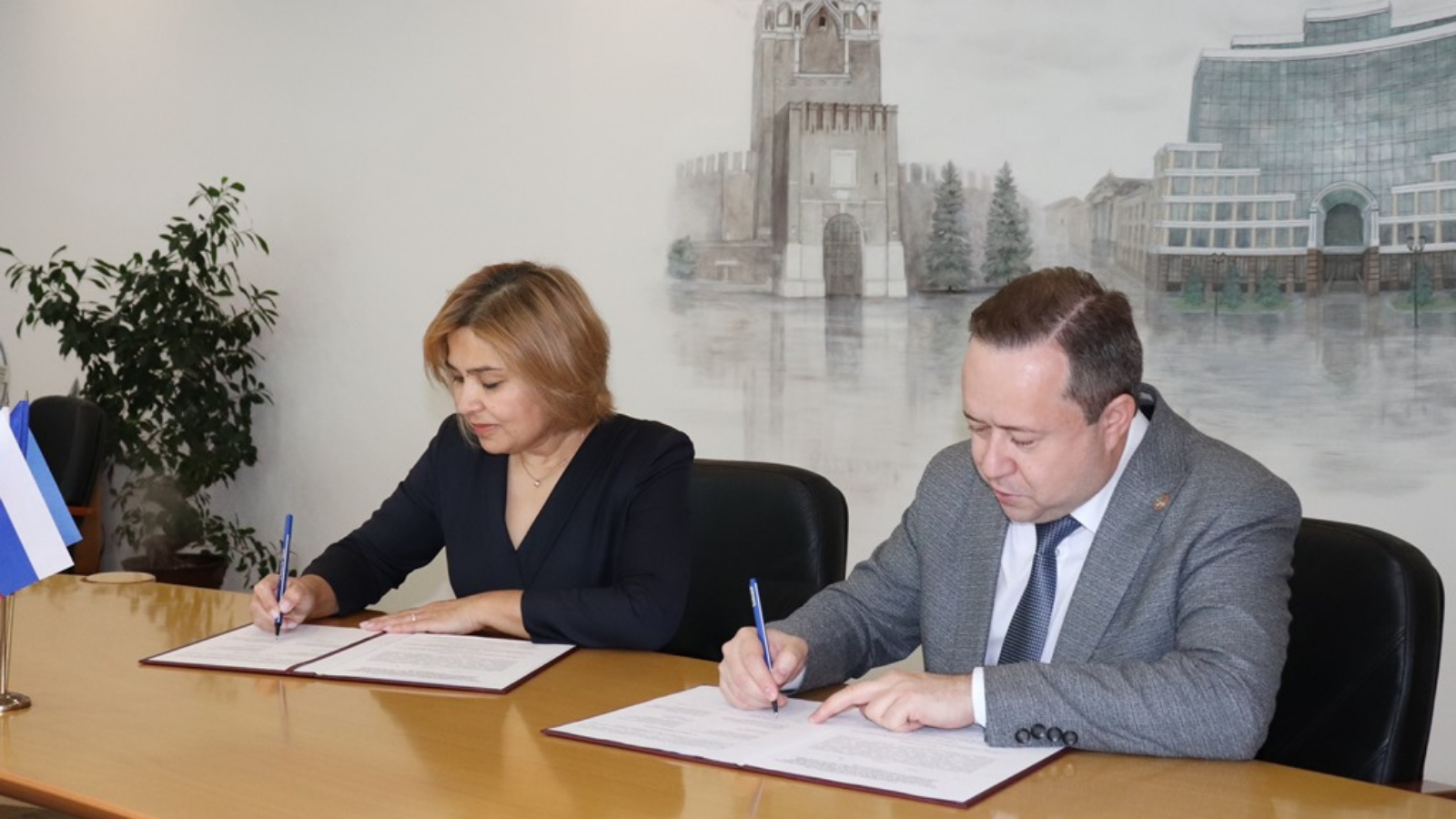 Управляющий Отделением СФР по Республике Татарстан Эдуард Вафин и руководитель филиала государственного фонда поддержки участников специальной военной операции «Защитники Отечества» Гузель Удачина подписали соглашение о сотрудничестве.