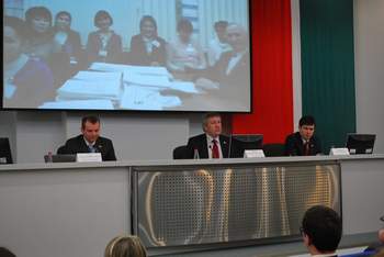 республики, был обеспечен доступ по всем возможным каналам связи. Управления ПФР могли выйти на связь с Казанью в режиме реального времени посредством видеоконференцсвязи, либо обычного звонка на стационарный телефон, присутствующие в зале могли задавать вопросы открыто с места или передать в письменном виде. Оставшиеся на своих рабочих местах сотрудники использовали возможность задать вопрос в специально открытой для этого мероприятия конференции в системе корпоративной почты Lotus Domino, но самым популярным способом выразить все свои мысли и чувства стала возможность отправить смс на номер управляющего.